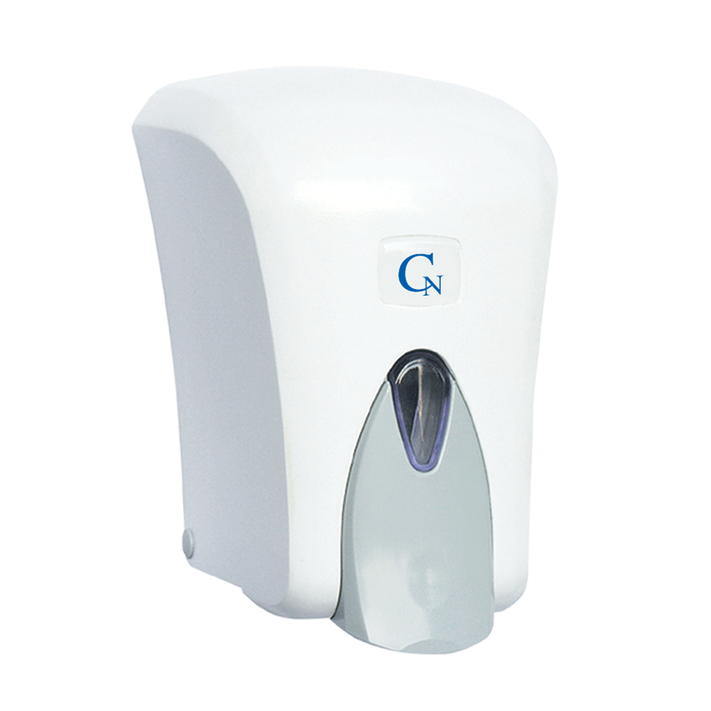 Nástěnný dávkovač na pěnové tekuté mýdlo, obsah zásobníku na dolévání je 1000 ml.